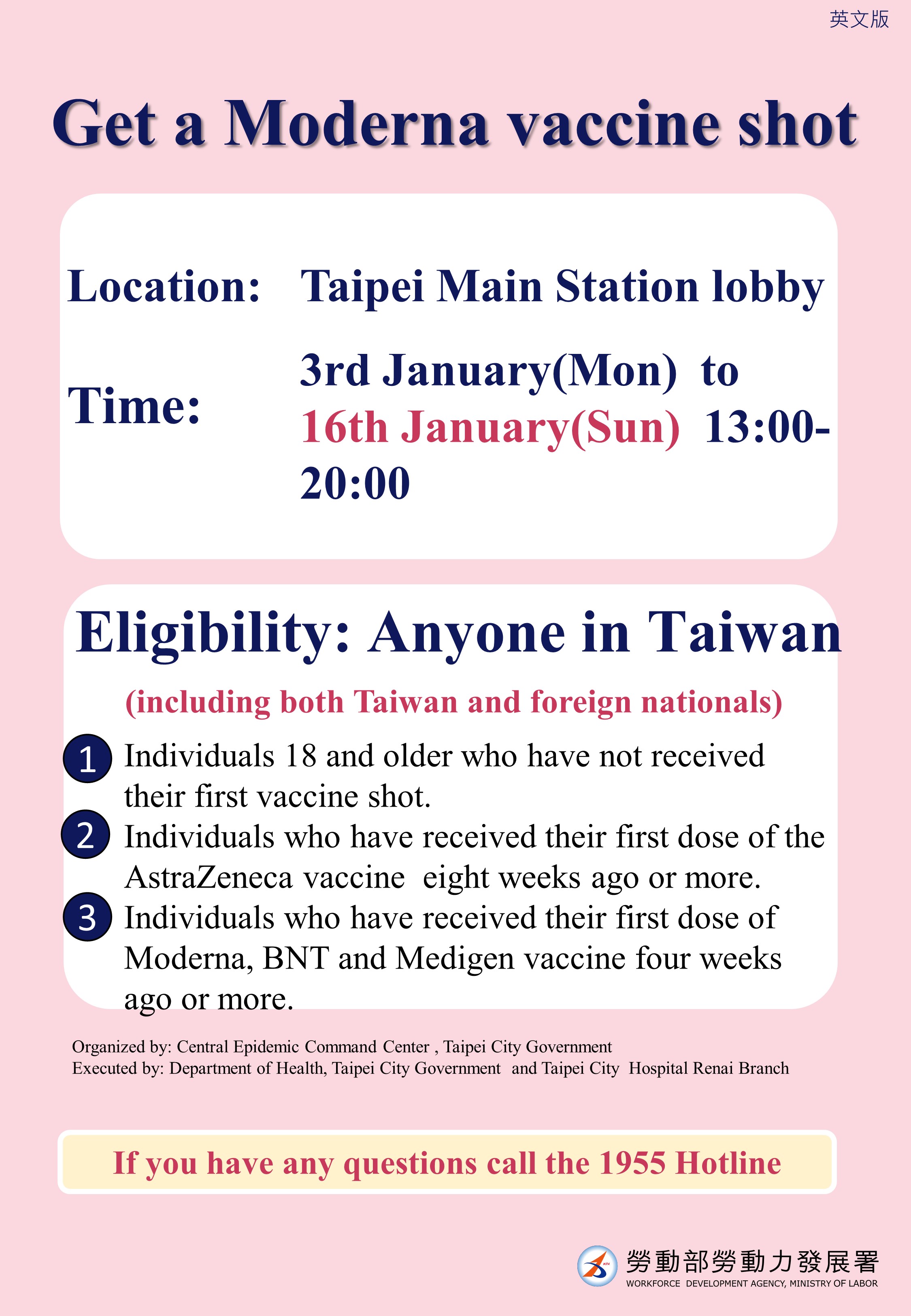 活動訊息:Get a Moderna vaccine shot-Taipei Main Station lobby-0116