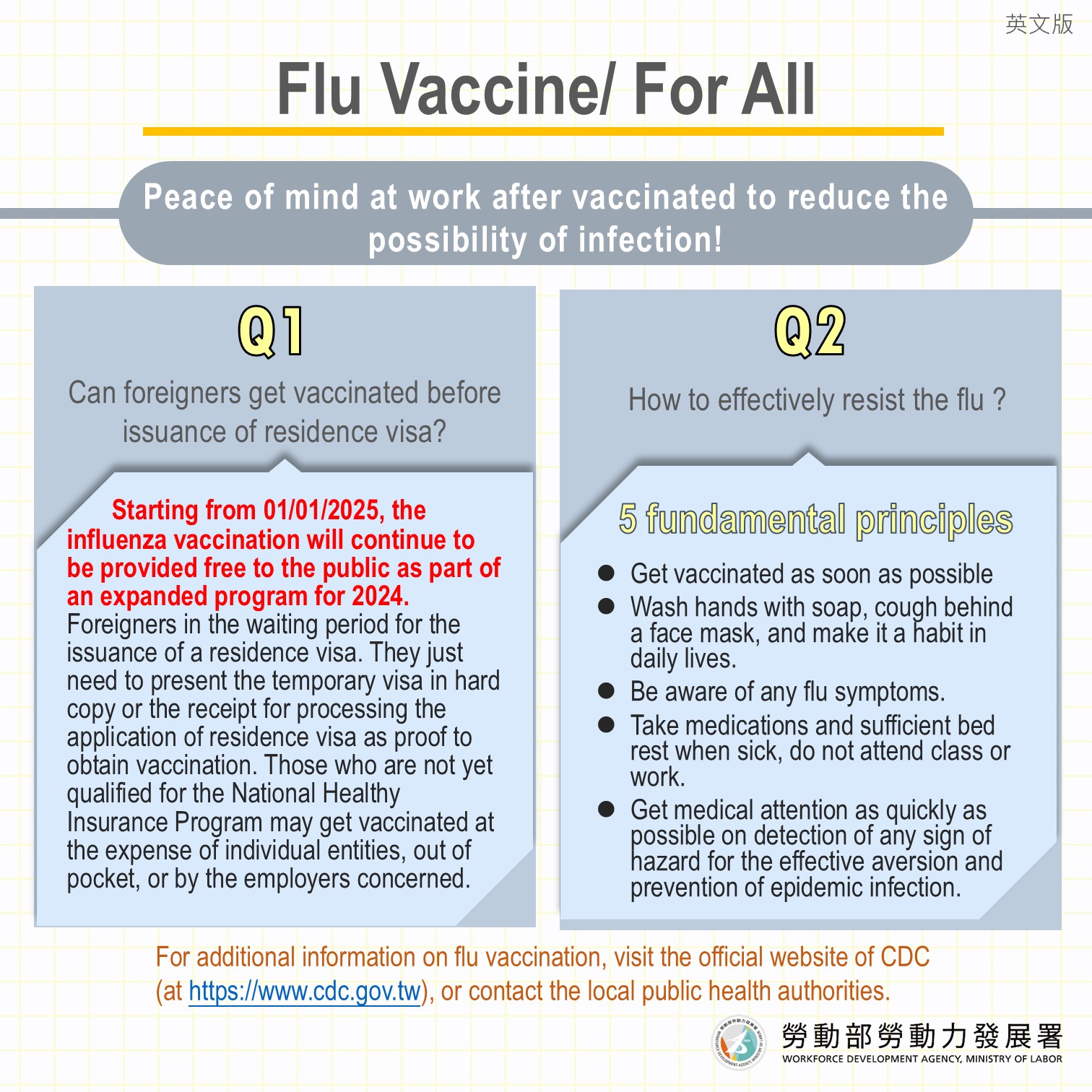For additional information on flu vaccination, visit the official website of CDC (at https://www.cdc.gov.tw), or contact the local public health authorities.