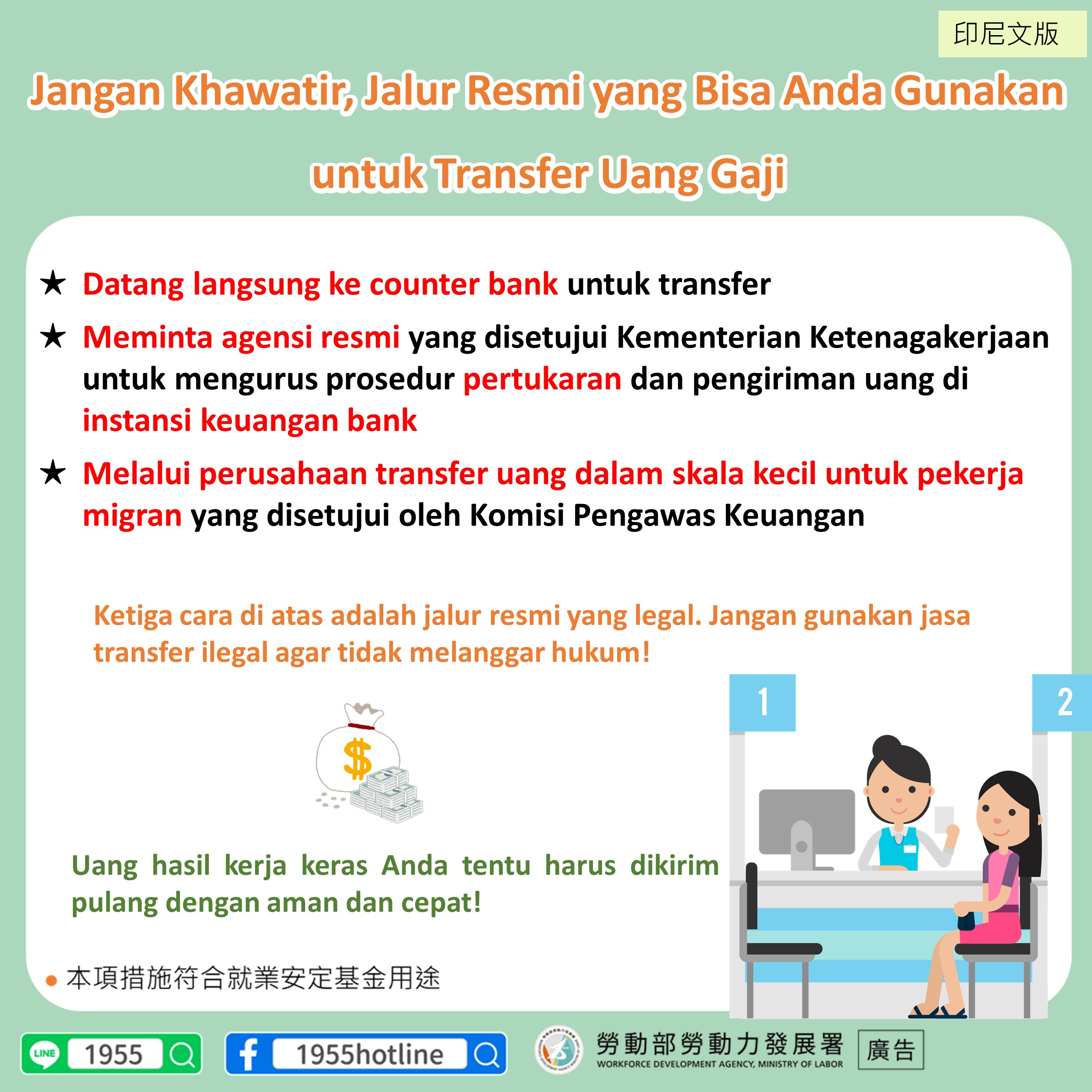 •Meminta agensi resmi yang disetujui Kementerian Ketenagakerjaan untuk mengurus prosedur pertukaran dan pengiriman uang di instansi keuangan bank