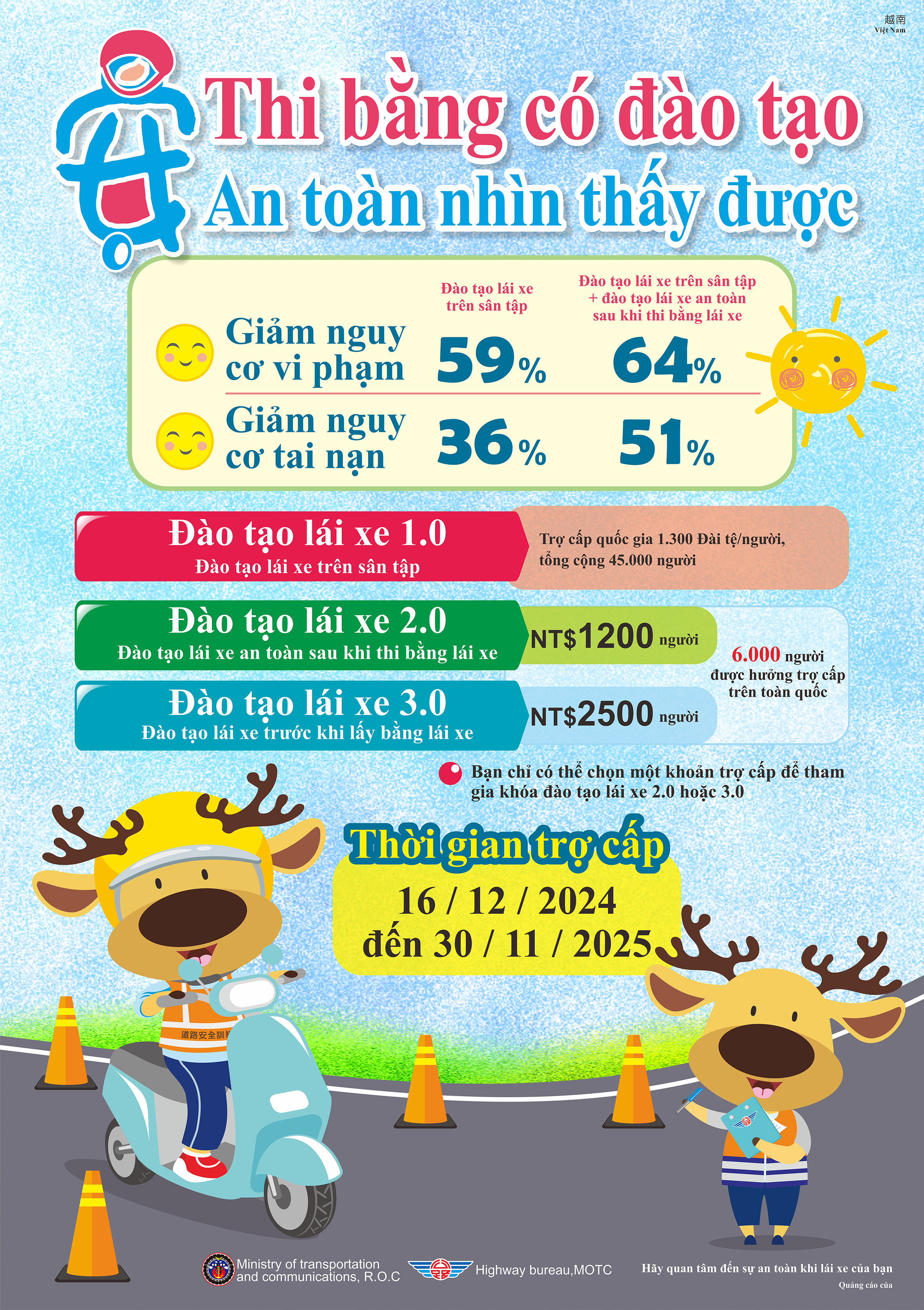 活動訊息:【交通部公路局】考照有訓練,安全看得見(機車駕訓補助宣導)-多國語言版