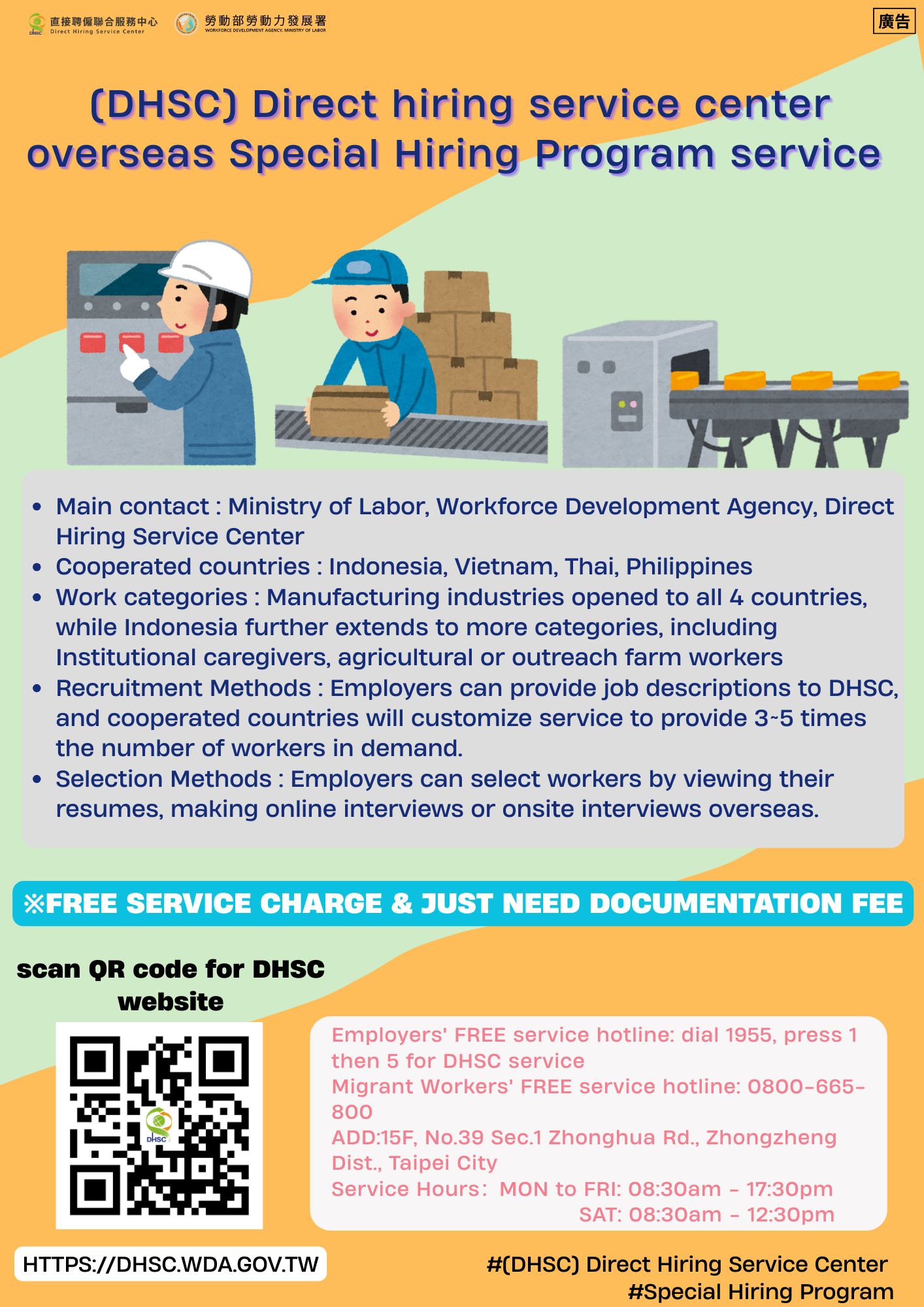 活動訊息:(DHSC) Direct hiring service center overseas Special Hiring Program service