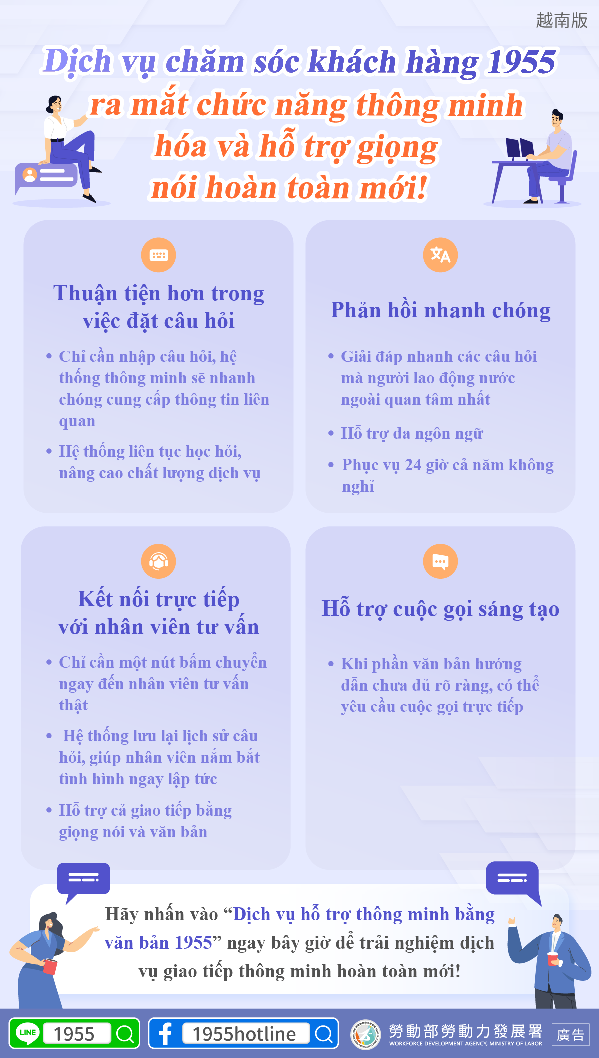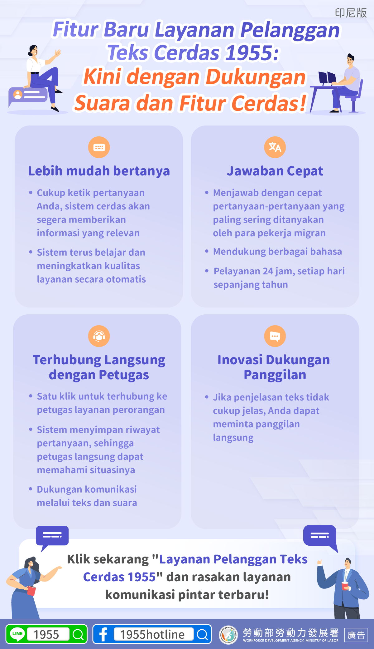 活動訊息:1955文字客服加入全新智能化和語音支援功能-多國語言版