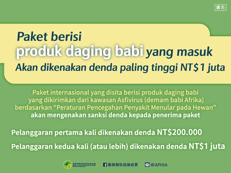 活動訊息:Paket berisi produk daging babi yang masuk Akan dikenakan denda paling tinggi NTS 1 j uta