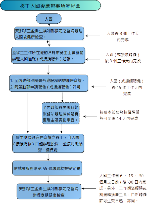 雇主應辦流程 > 移工入國後應辦理事項流程圖