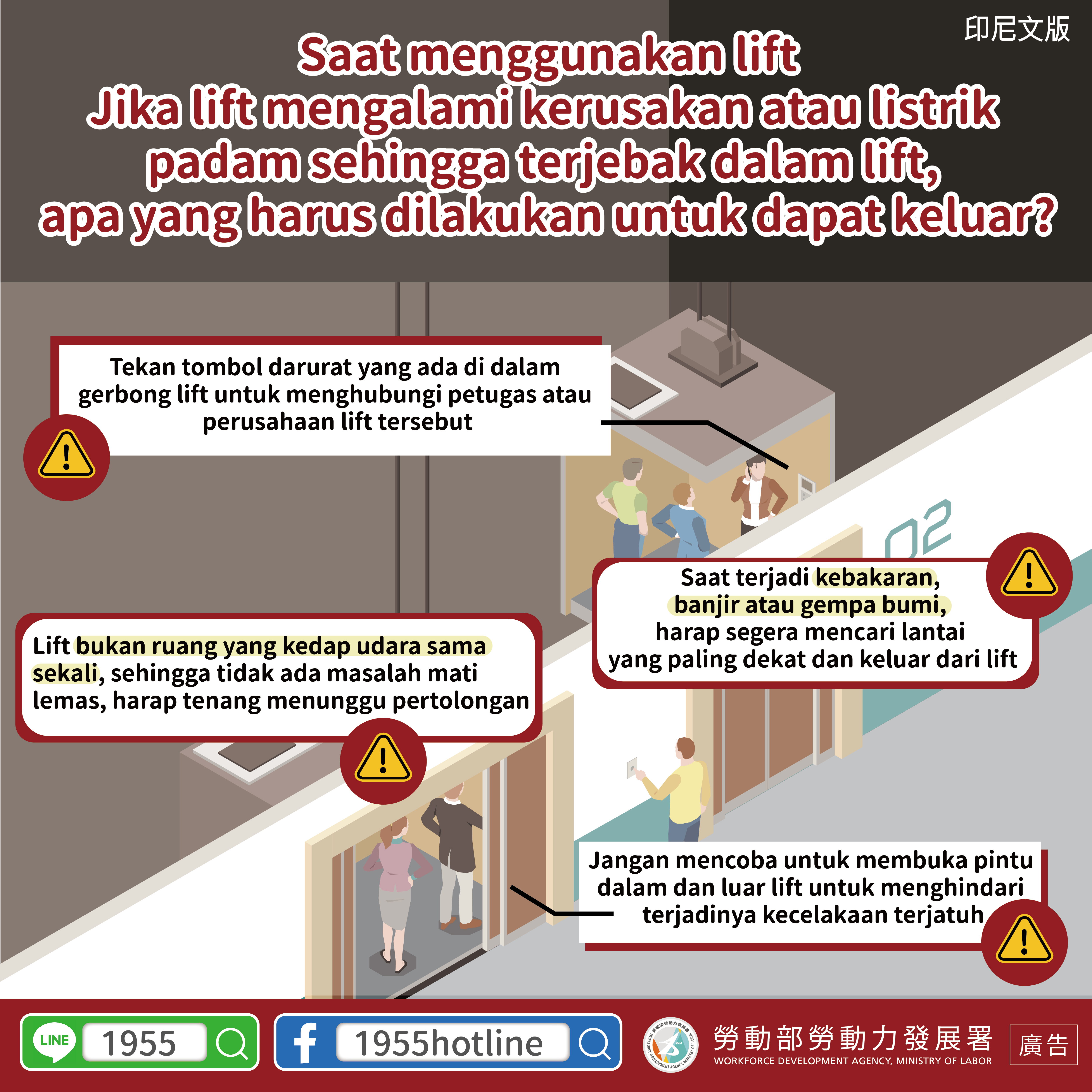 標題:Saat menggunakan lift Jika lift mengalami kerusakan atau listrik padam sehingga terjebak dalam lift, apa yang harus dilakukan untuk dapat keluar?