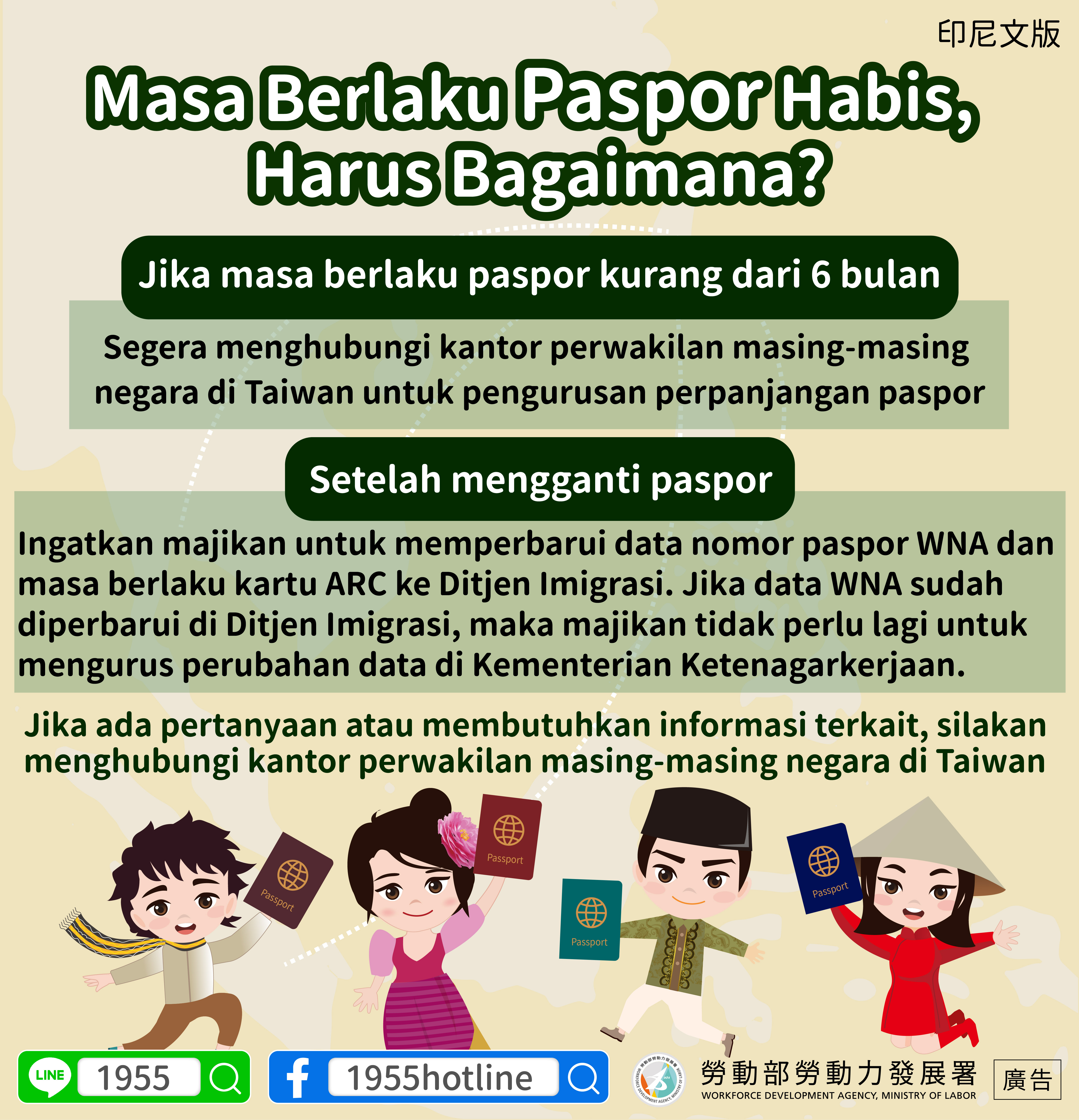 Segera menghubungi kantor perwakilan masing-masing negara di Taiwan untuk pengurusan perpanjangan paspor