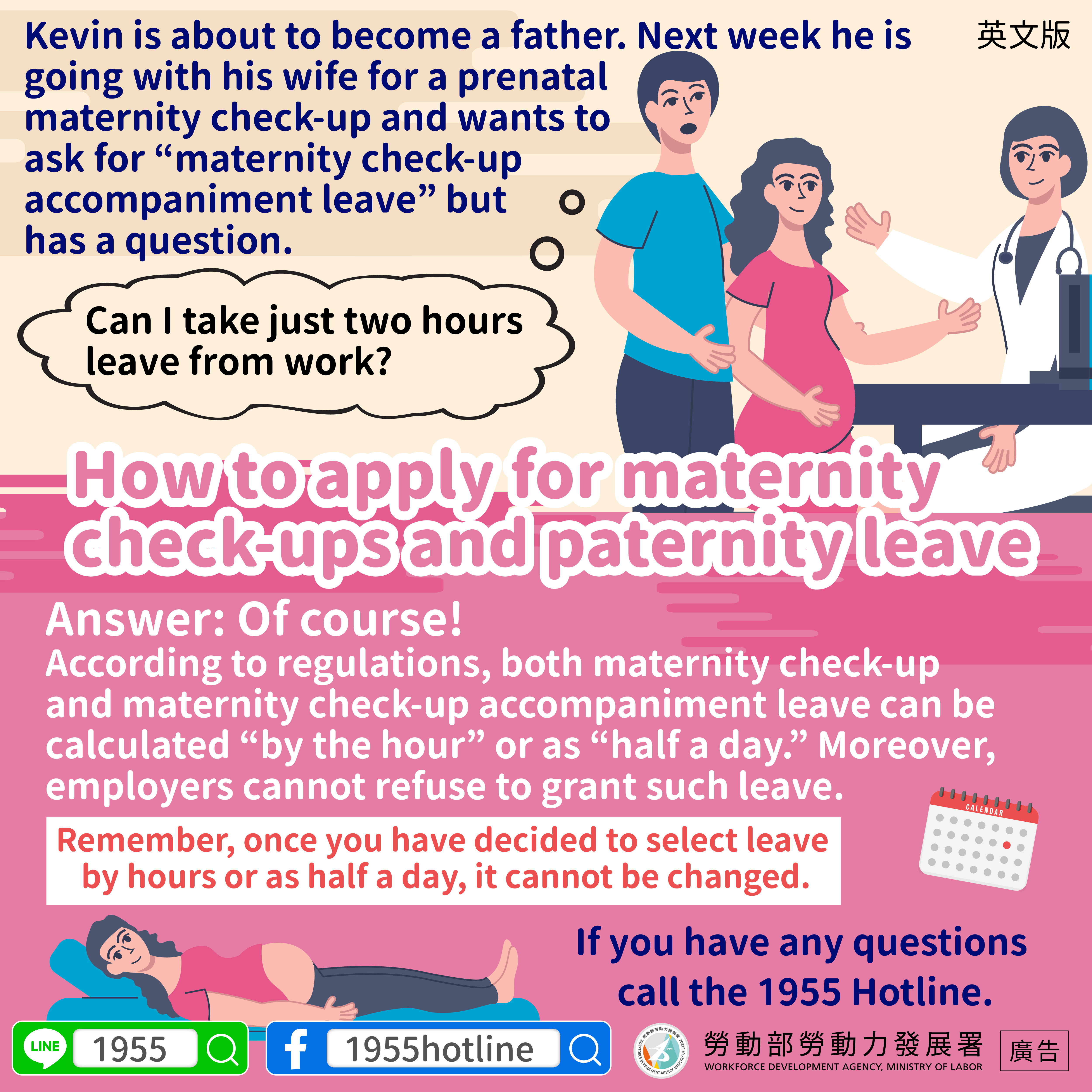 Kevin is about to become a father. Next week he is going with his wife for a prenatal maternity check-up and wants to ask for “maternity check-up accompaniment leave” but has a question.