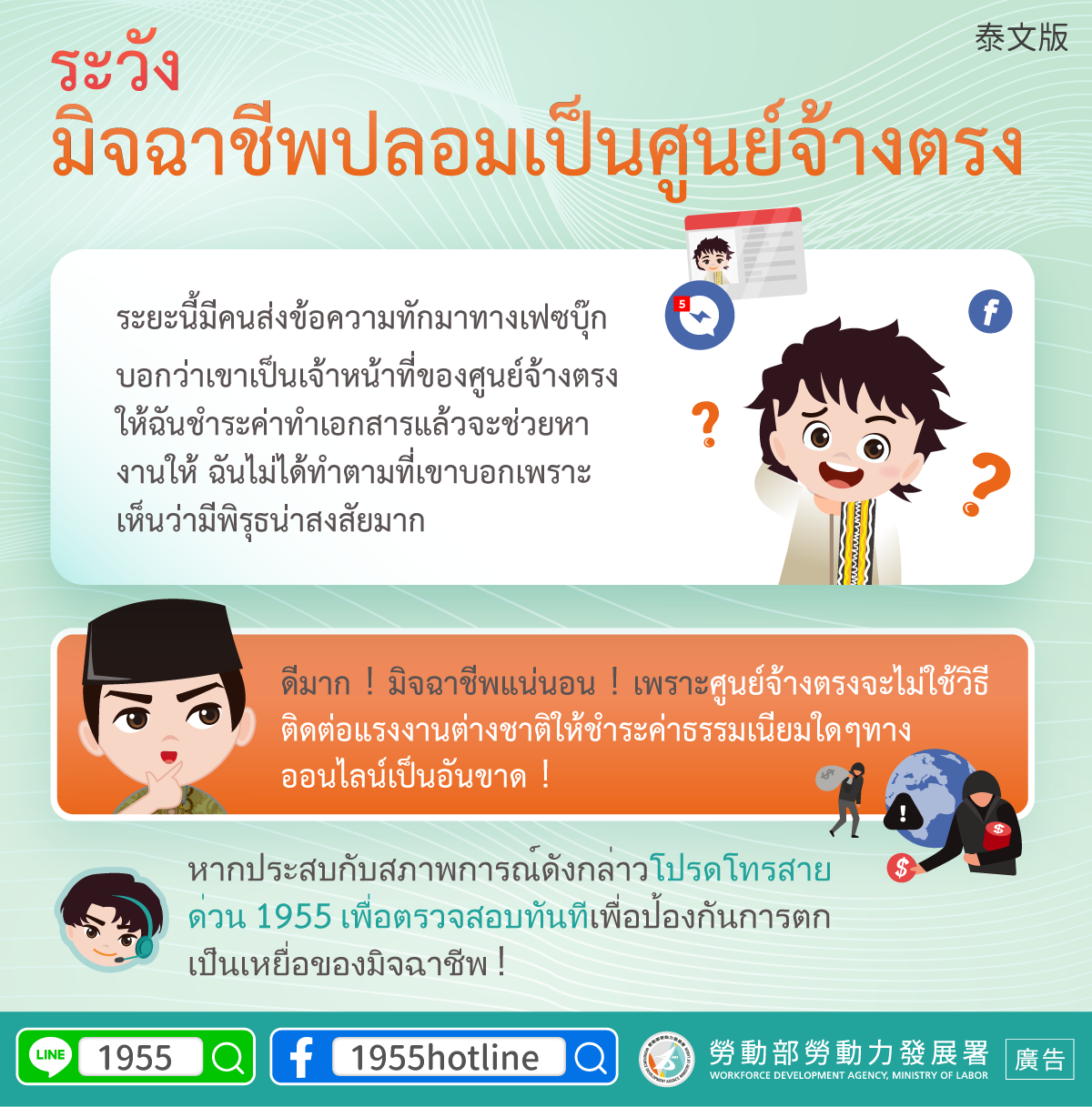 標題:ระวัง มิจฉาชีพปลอมเป็นศูนย์จ้างตรง