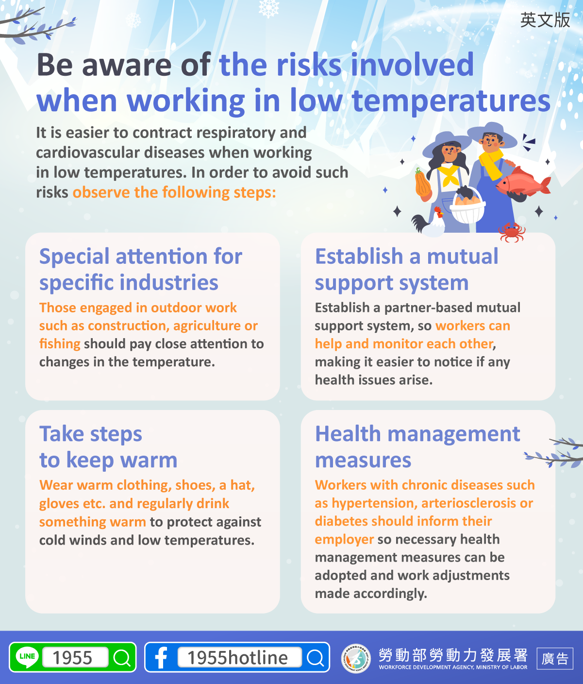 •Special attention for specific industries:Those engaged in outdoor work such as construction, agriculture or fishing should pay close attention to changes in the temperature.