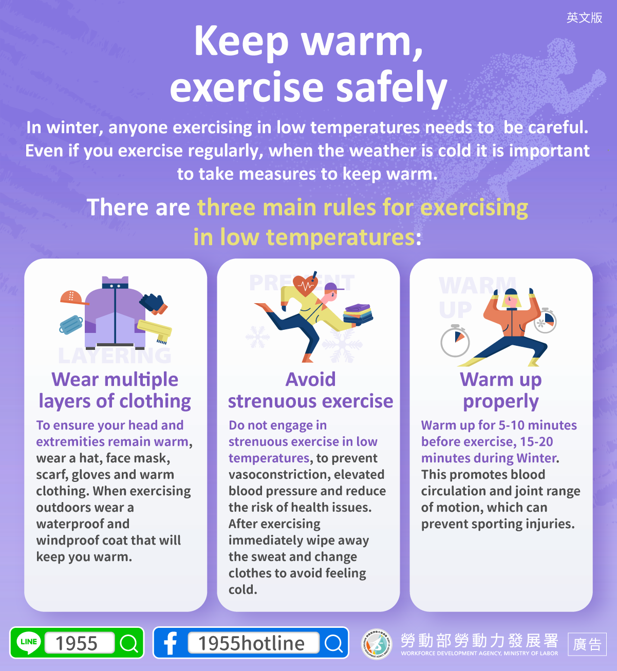 In winter, anyone exercising in low temperatures needs to be careful. Even if you exercise regularly, when the weather is cold it is important to take measures to keep warm.