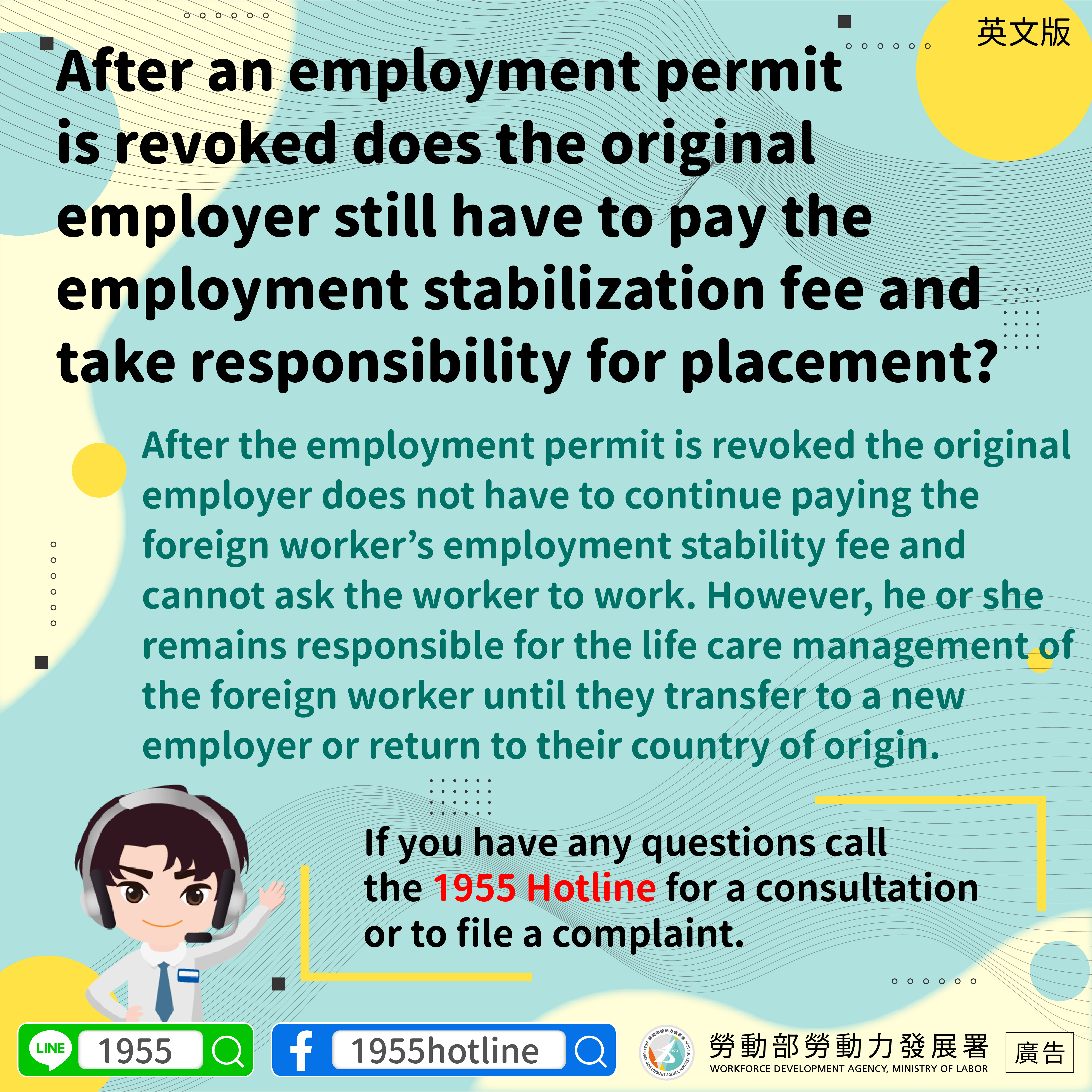 標題:After an employment permit is revoked does the original employer still have to pay the employment stabilization fee and take responsibility for placement?