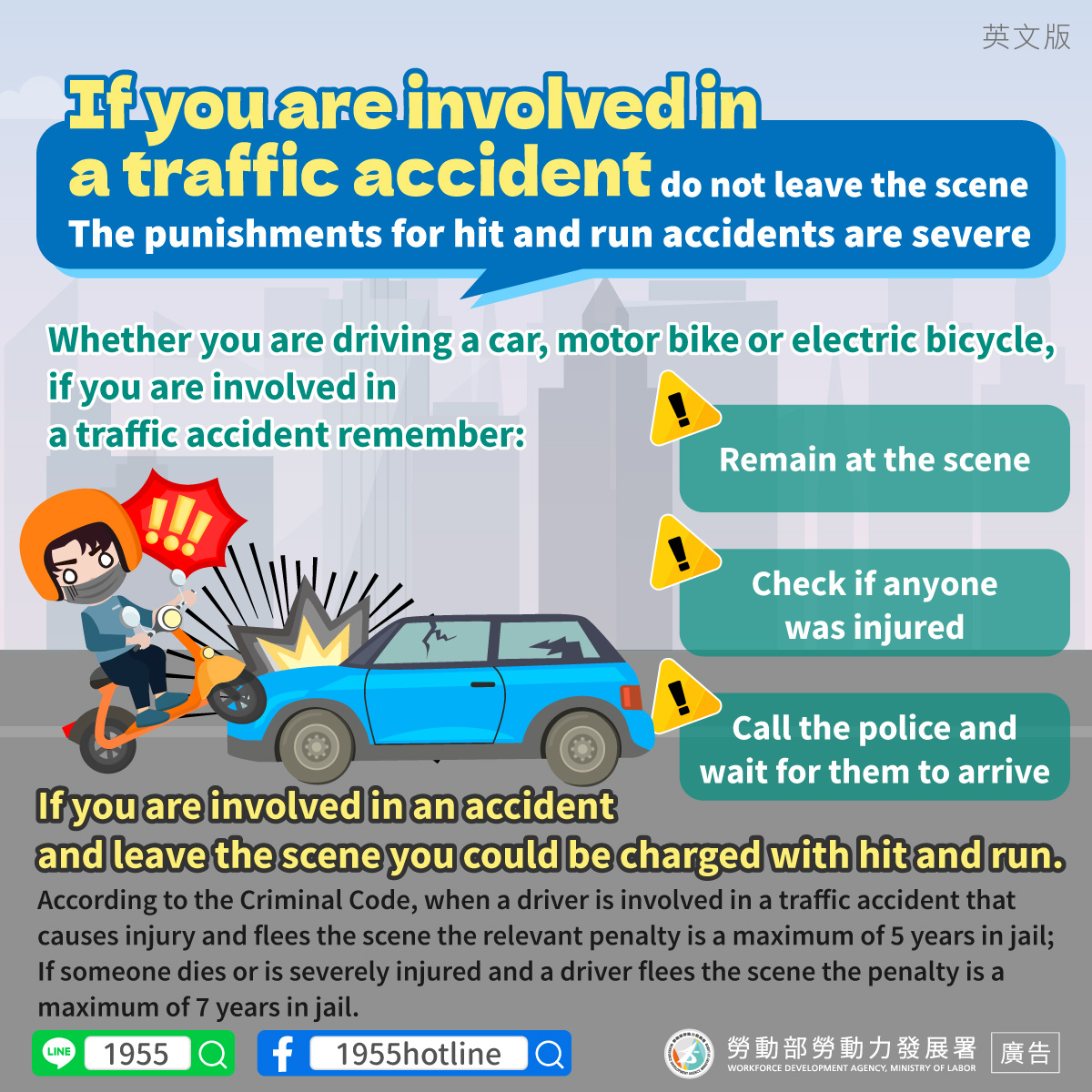 Whether you are driving a car, motor bike or electric bicycle, if you are involved in a traffic accident remember: