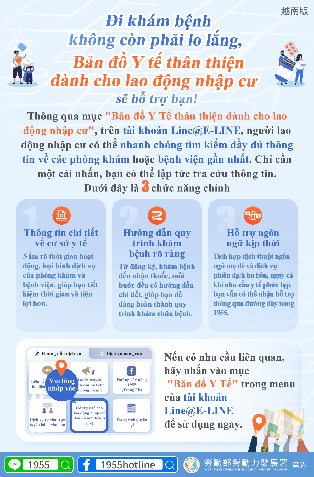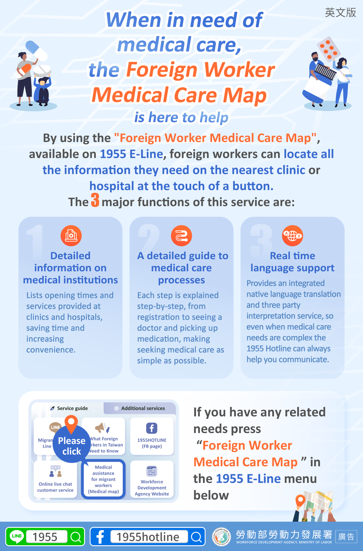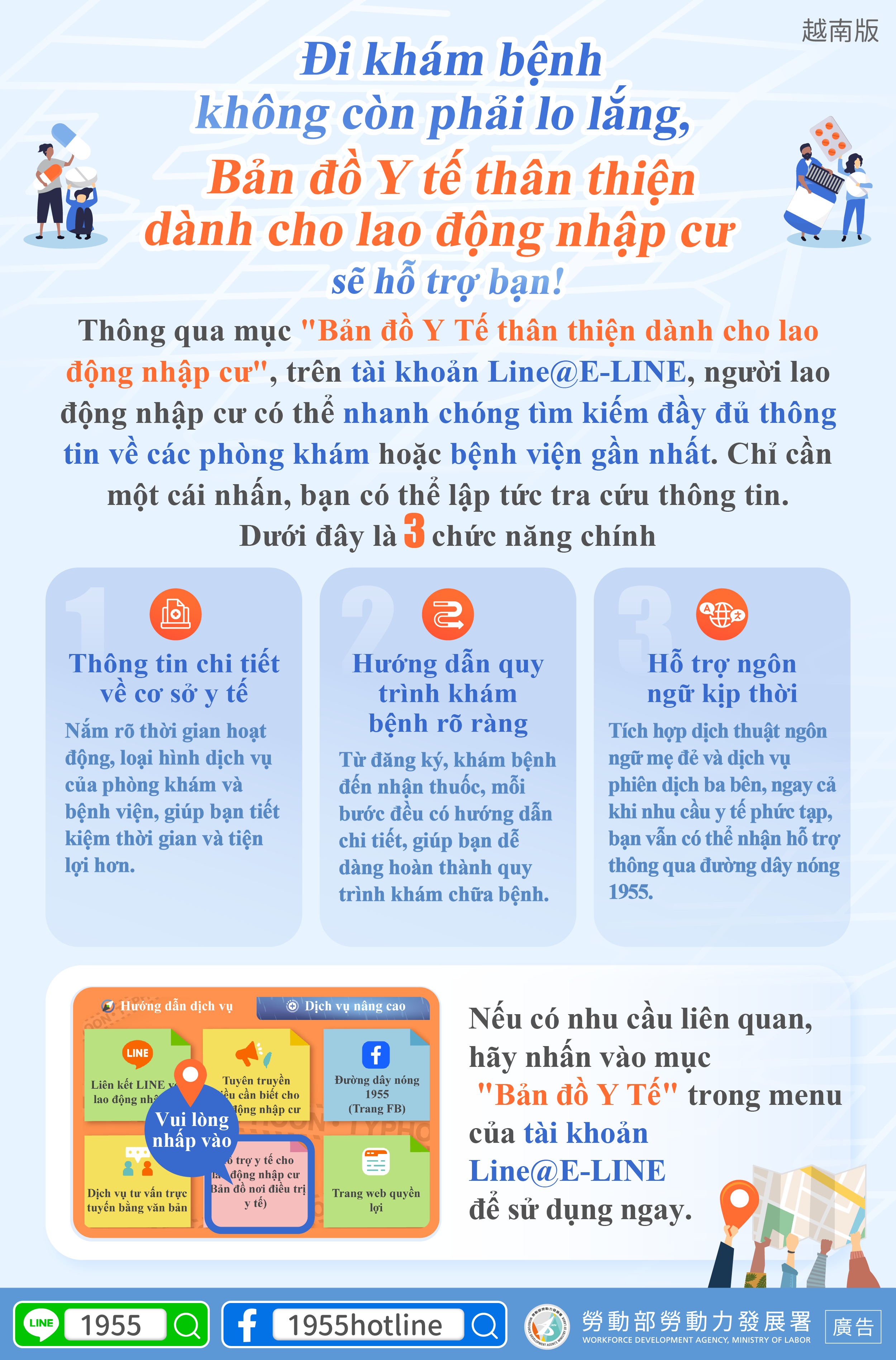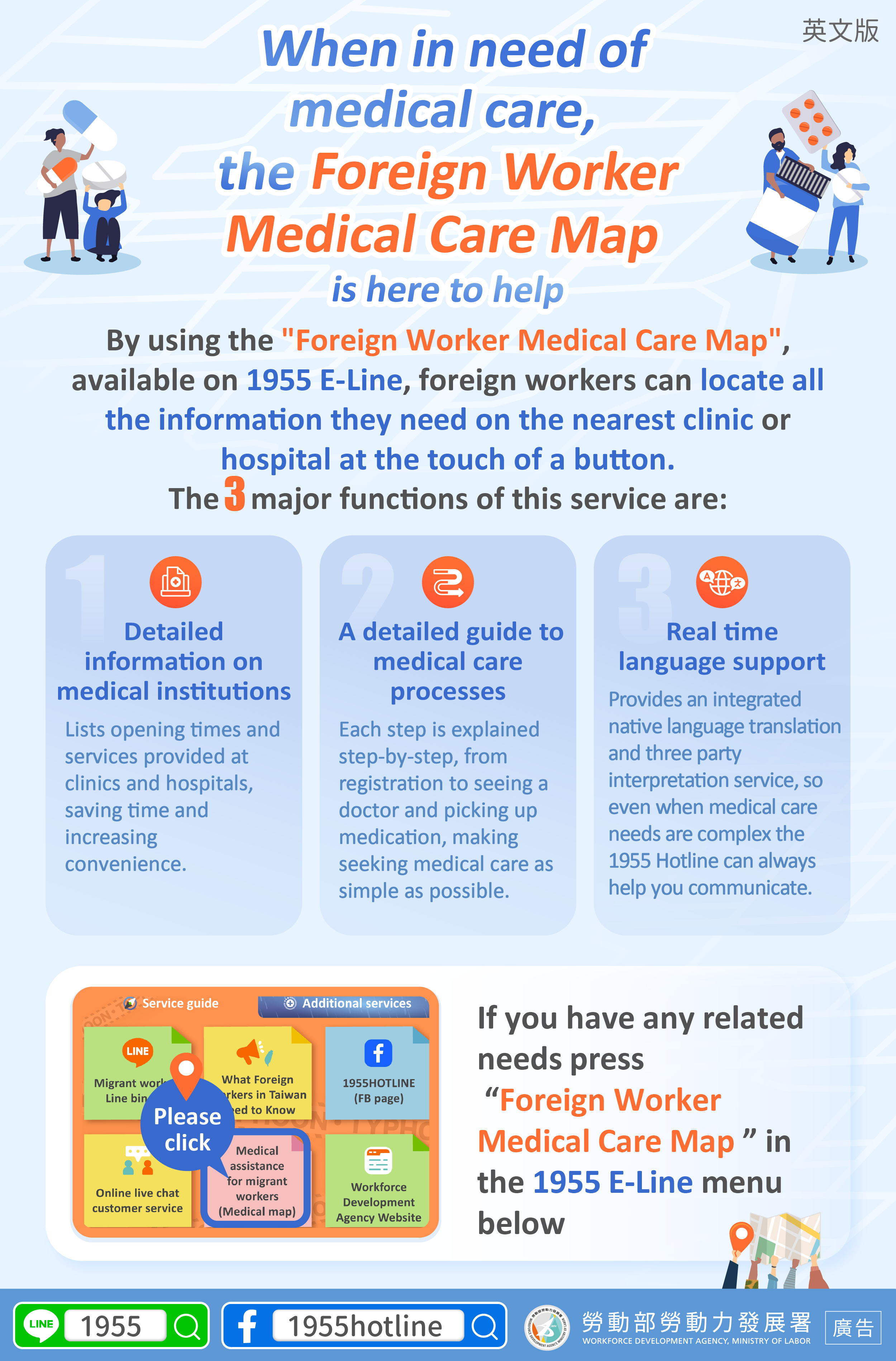 If you have any related needs press “Foreign Worker Medical Care Map ” in the 1955 E-Line menu below