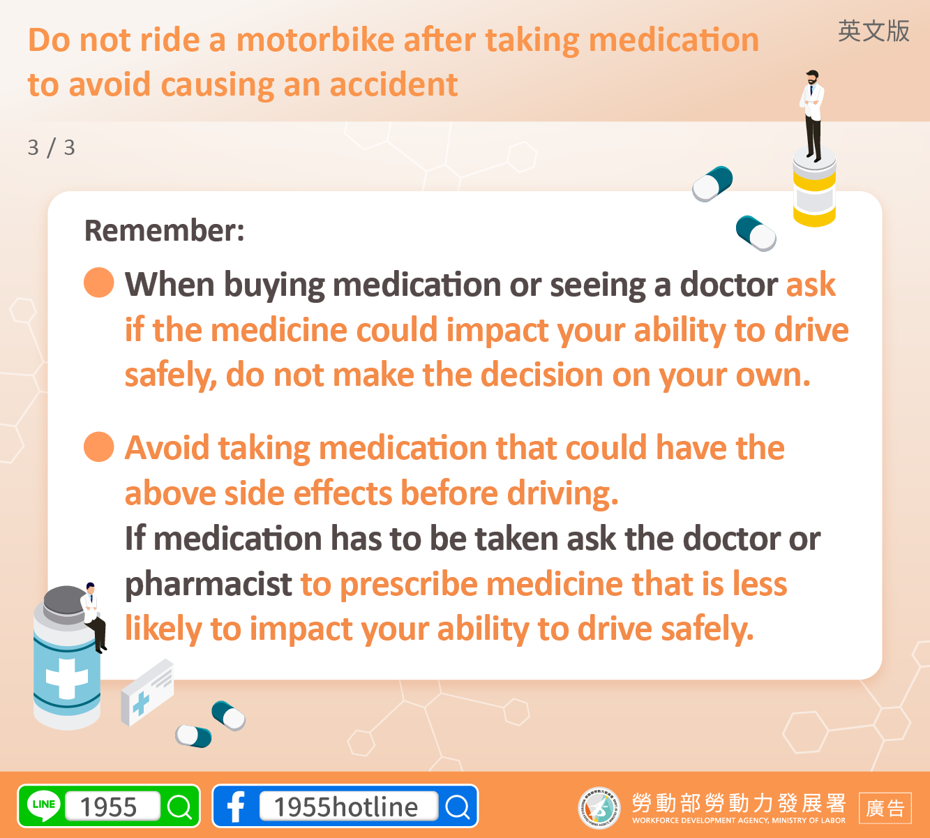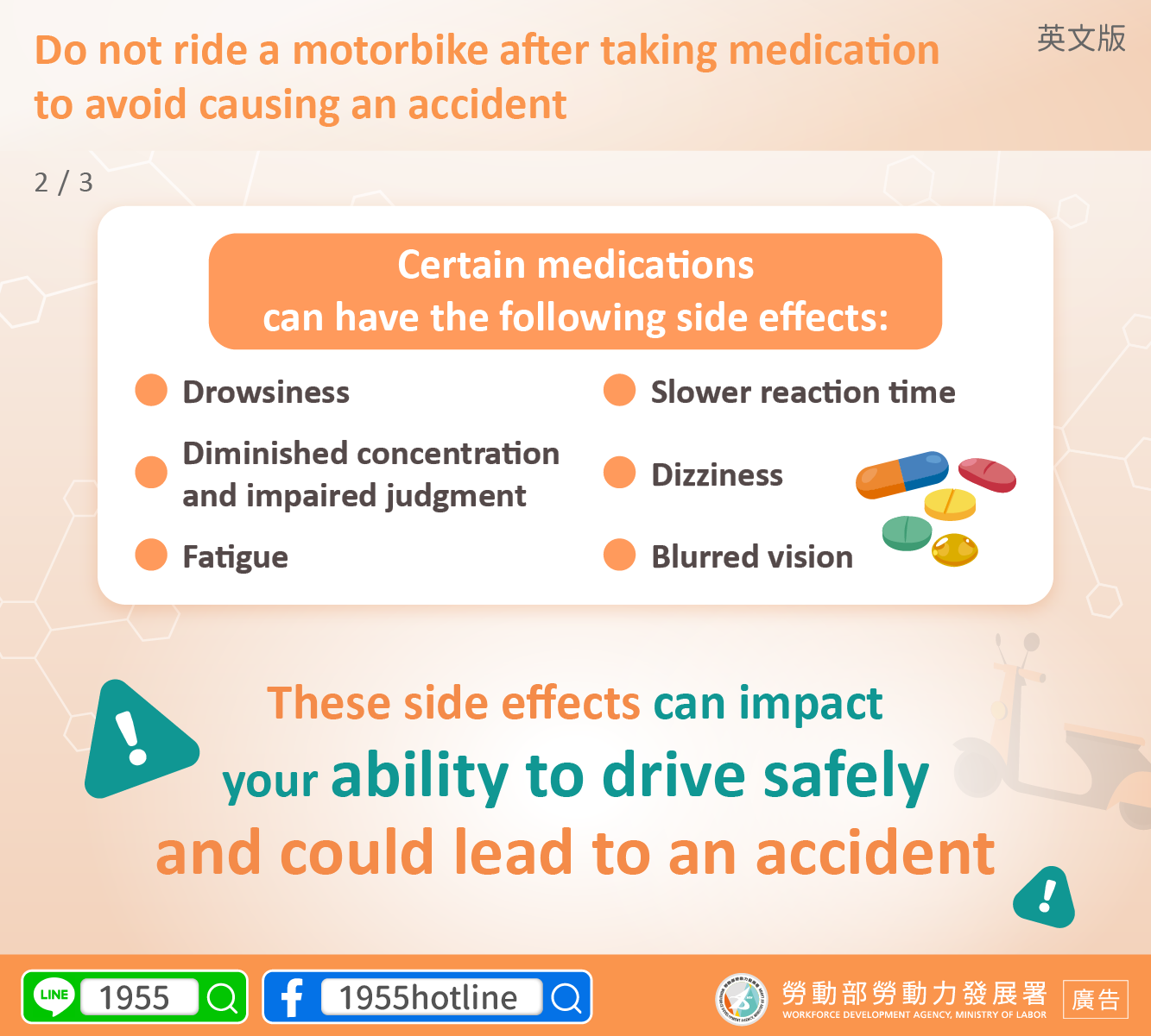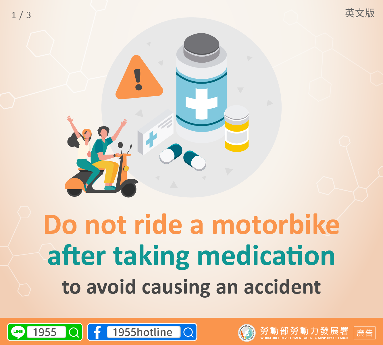 標題:Do not ride a motorbike after taking medication to avoid causing an accident