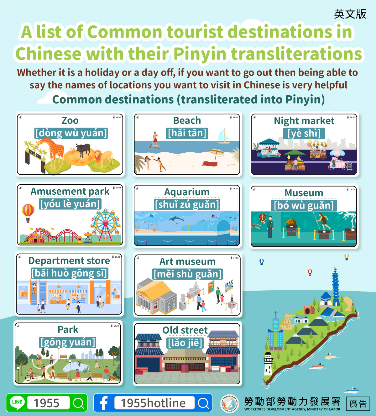 Whether it is a holiday or a day off, if you want to go out then being able to say the names of locations you want to visit in Chinese is very helpful