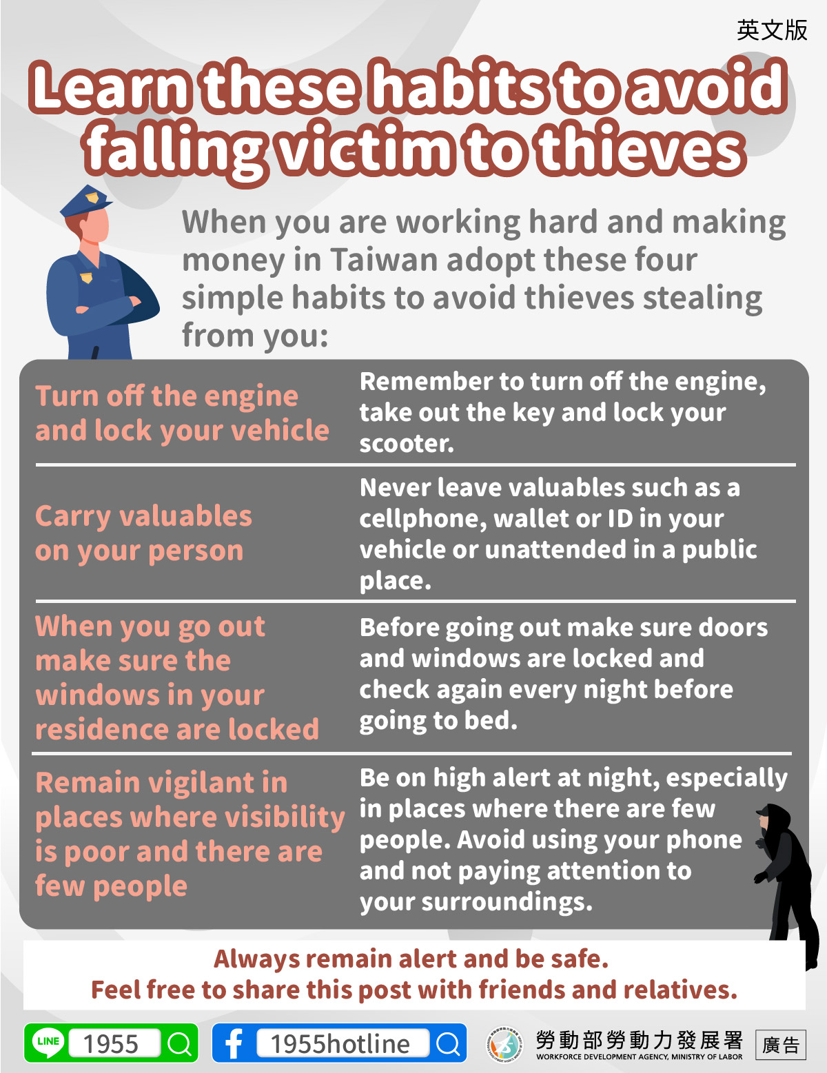 When you are working hard and making money in Taiwan adopt these four simple habits to avoid thieves stealing from you: