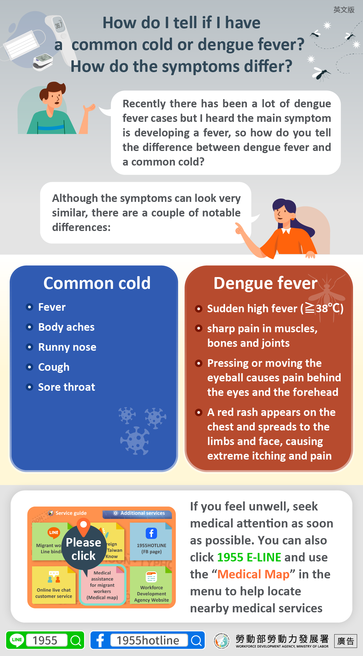 A:Recently there has been a lot of dengue fever cases but I heard the main symptom is developing a fever, so how do you tell the difference between dengue fever and a common cold?