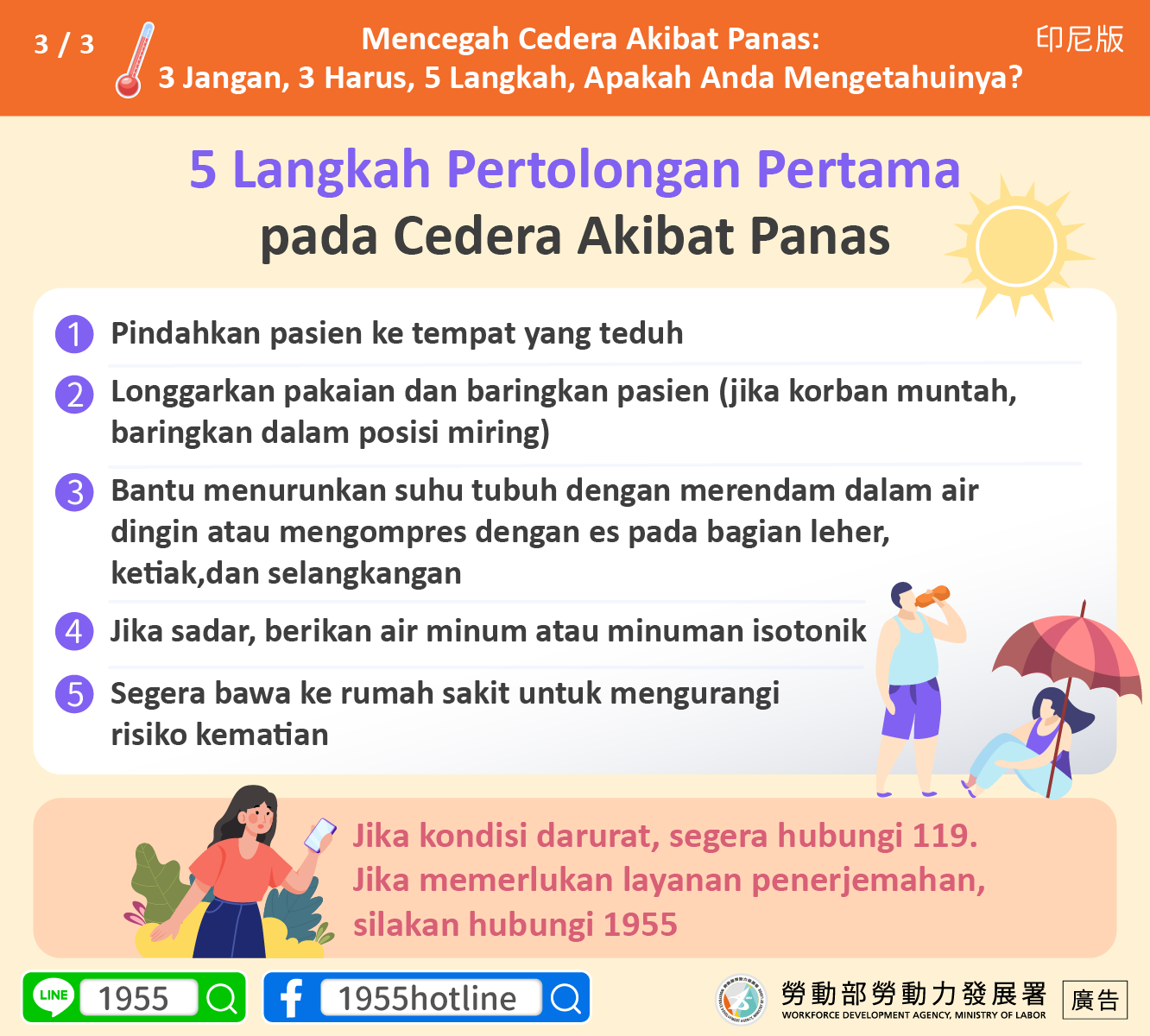 Jika kondisi darurat, segera hubungi 119. Jika memerlukan layanan penerjemahan, silakan hubungi 1955