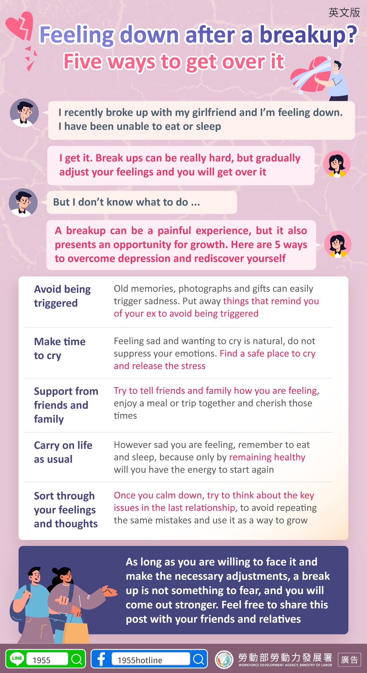 As long as you are willing to face it and make the necessary adjustments, a break up is not something to fear, and you will come out stronger. Feel free to share this post with your friends and relatives