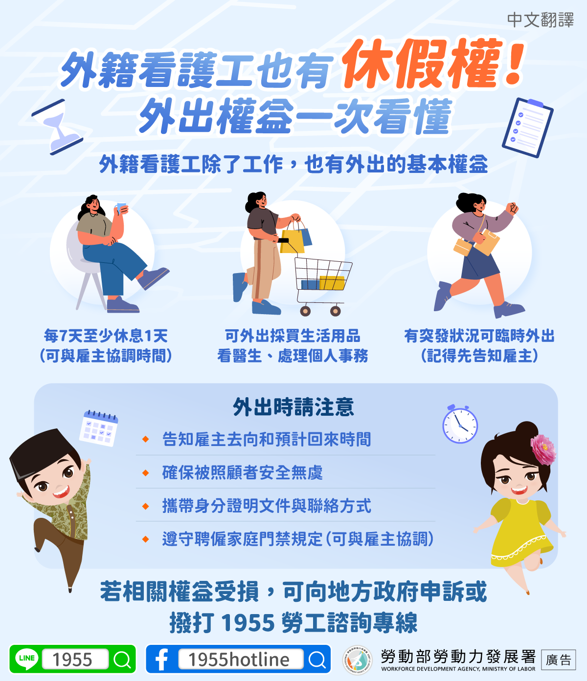 ▍外籍看護工也有休假權! 外出權益一次看懂