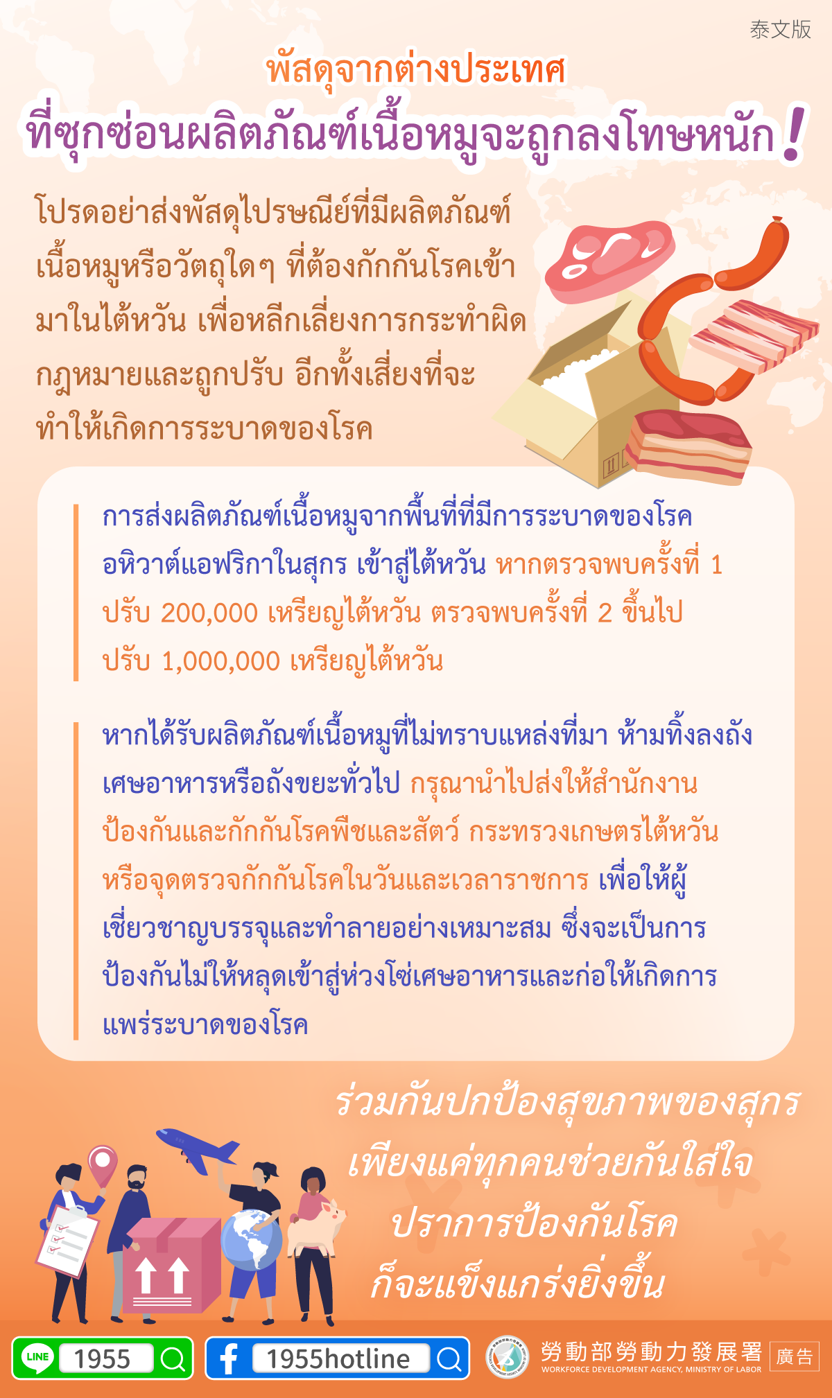 ▍พัสดุจากต่างประเทศ ที่ซุกซ่อนผลิตภัณฑ์เนื้อหมูจะถูกลงโทษหนัก!