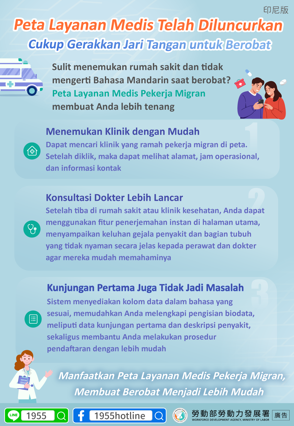 Sulit menemukan rumah sakit dan tidak mengerti Bahasa Mandarin saat berobat? Peta Layanan Medis Pekerja Migran membuat Anda lebih tenang