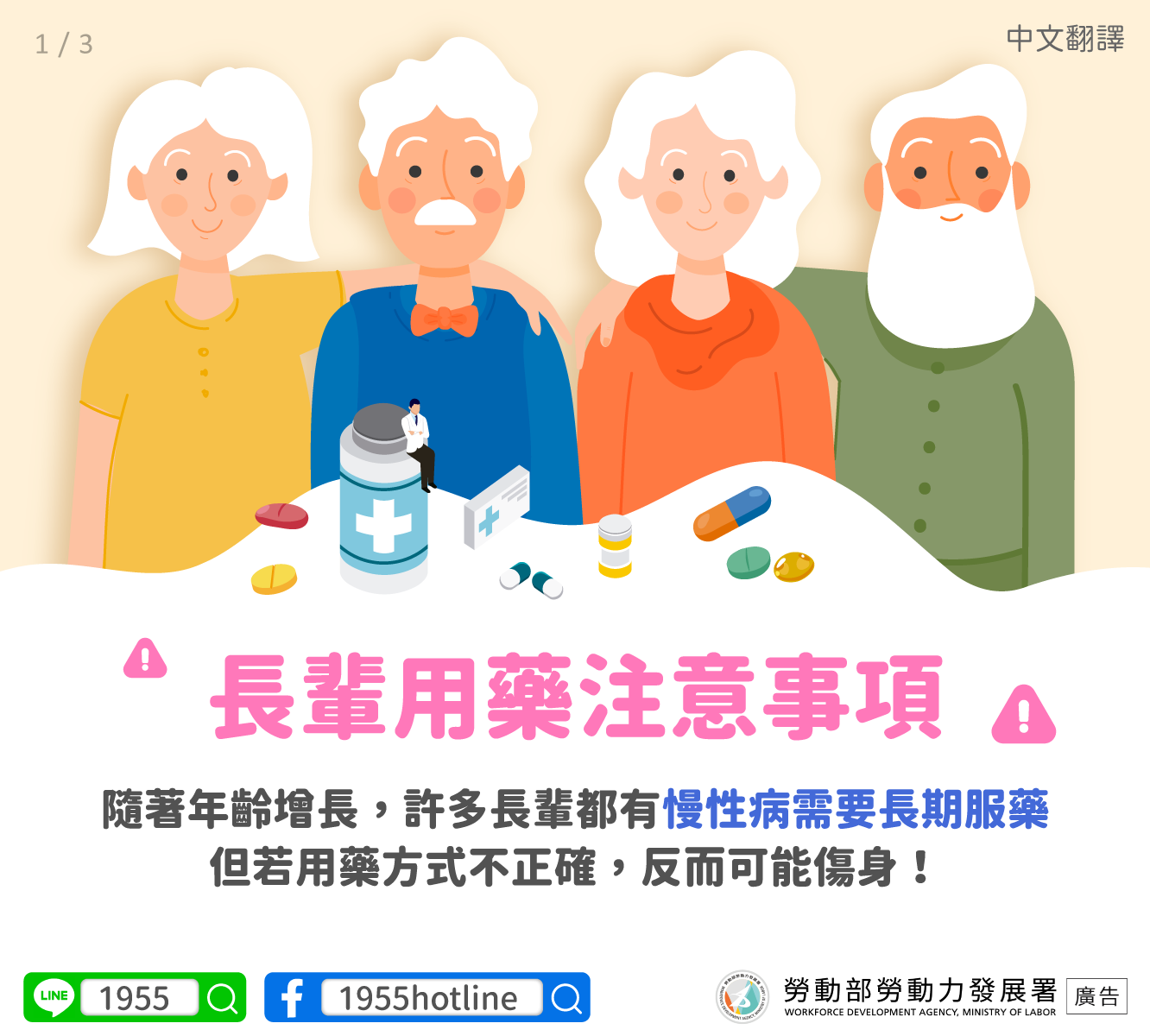 標題:LINE@移點通-【長輩用藥注意事項】-多國語言版