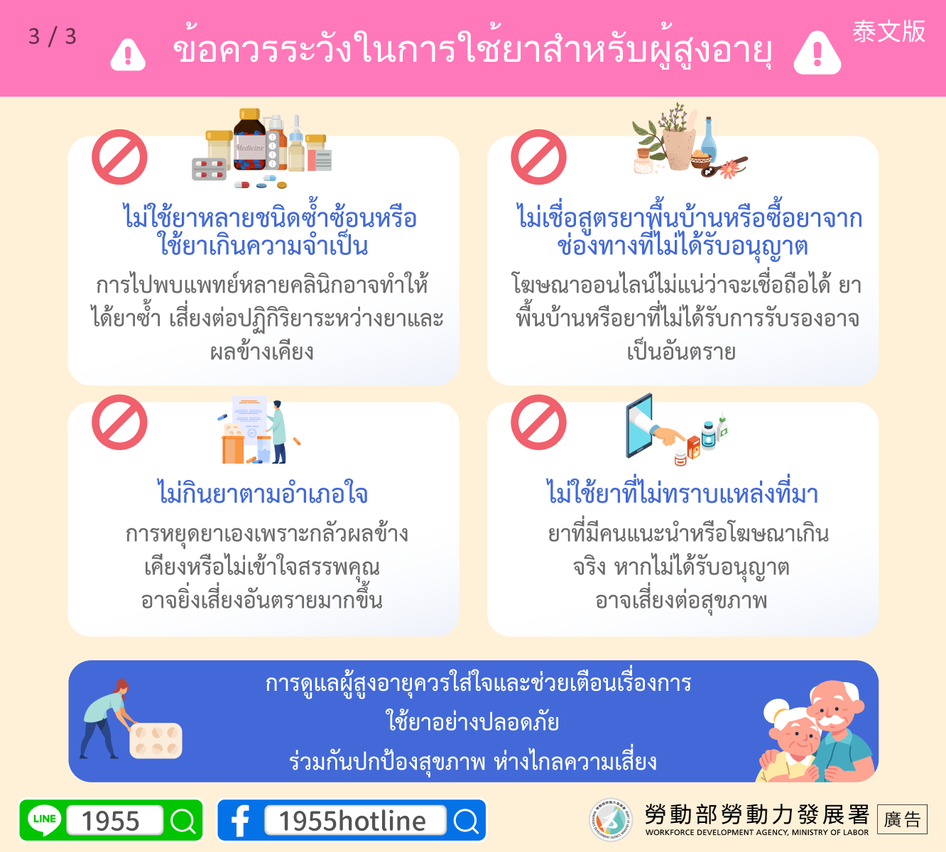 การดูแลผู้สูงอายุควรใส่ใจและช่วยเตือนเรื่องการใช้ยาอย่างปลอดภัย