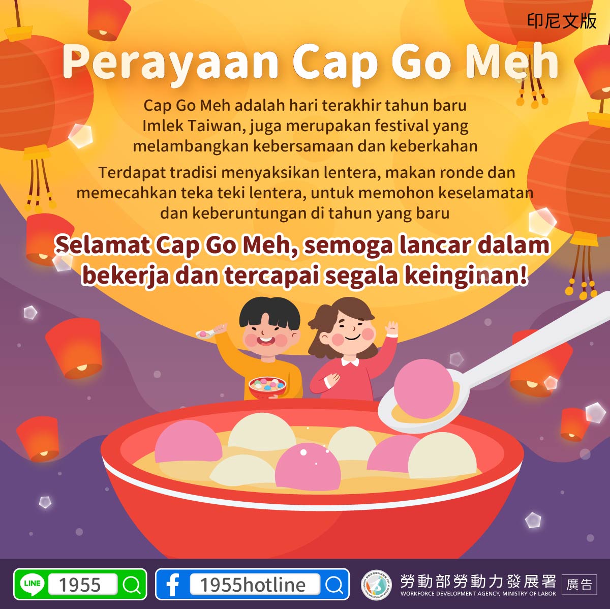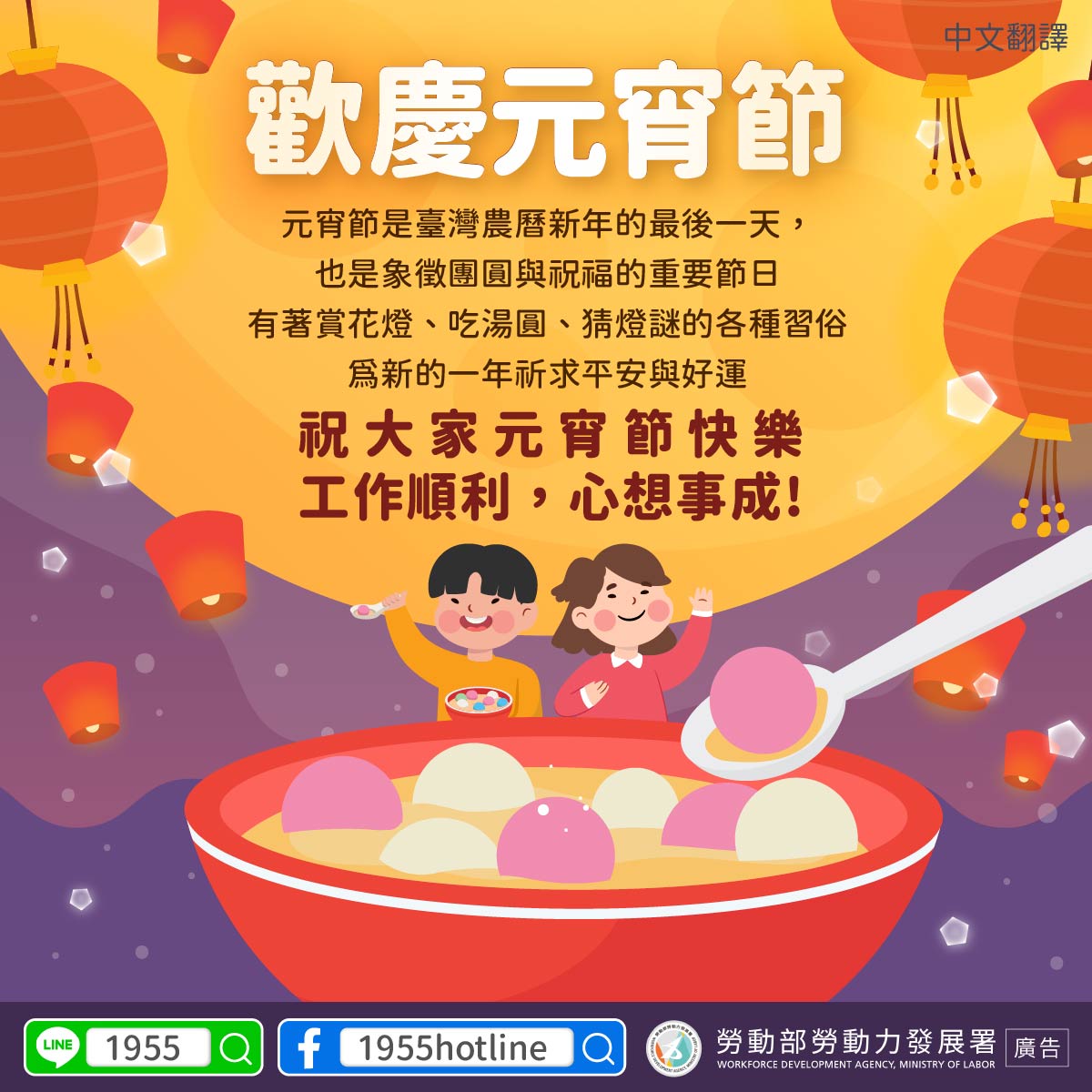 The Ministry of Labor wishes everyone a happy Lantern Festival, success at work, and that all your dreams come true.