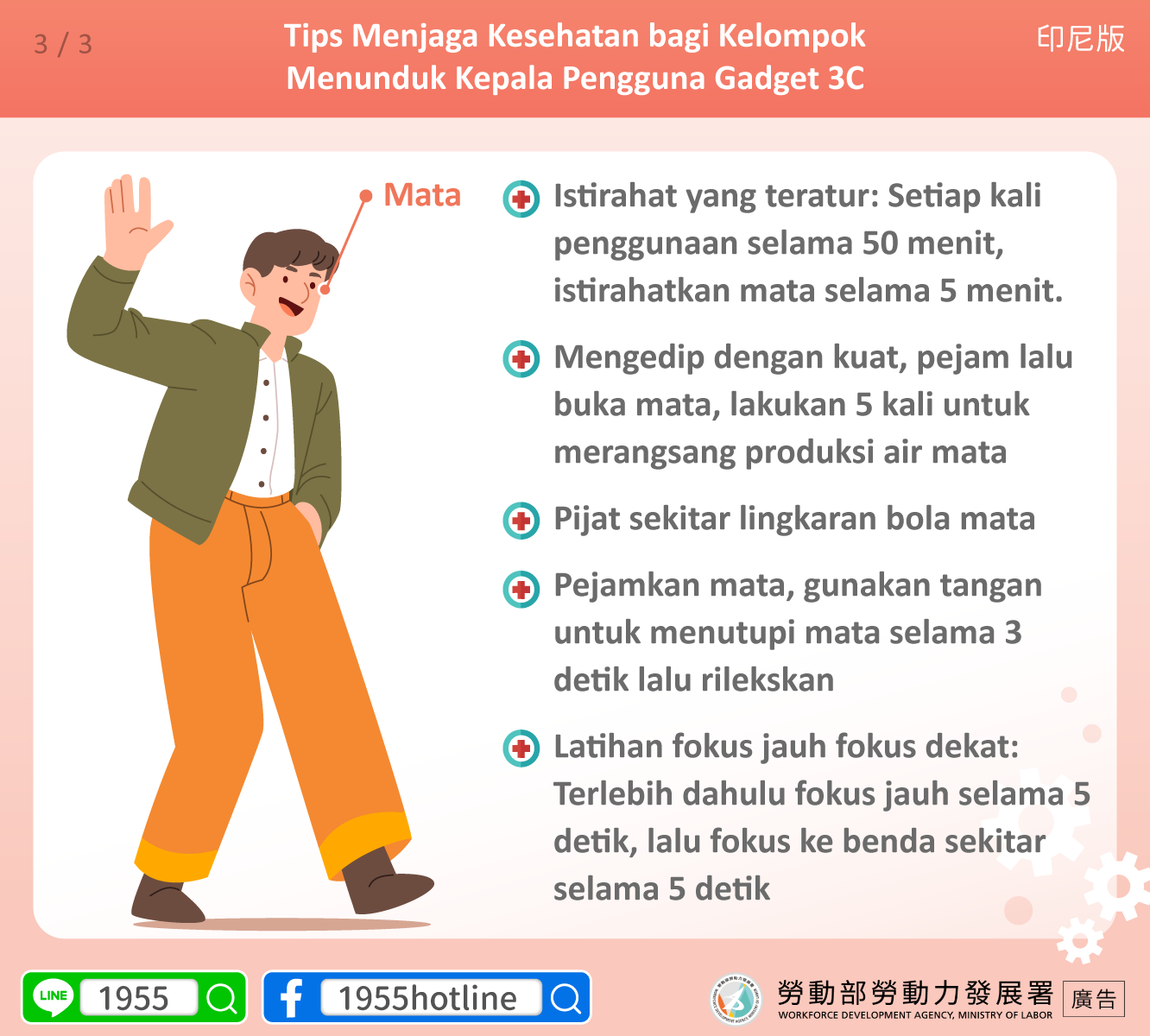 •Pejamkan mata, gunakan tangan untuk menutupi mata selama 3 detik lalu rilekskan