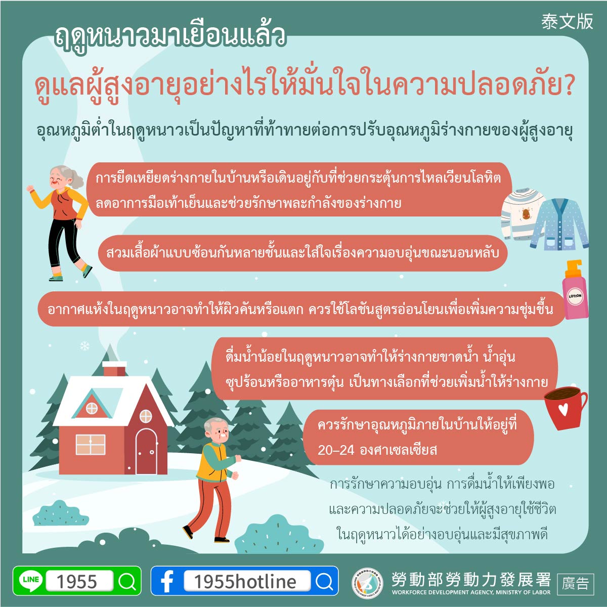 การรักษาความอบอุ่น การดื่มน้ำให้เพียงพอและความปลอดภัยจะช่วยให้ผู้สูงอายุใช้ชีวิตในฤดูหนาวได้อย่างอบอุ่นและมีสุขภาพดี