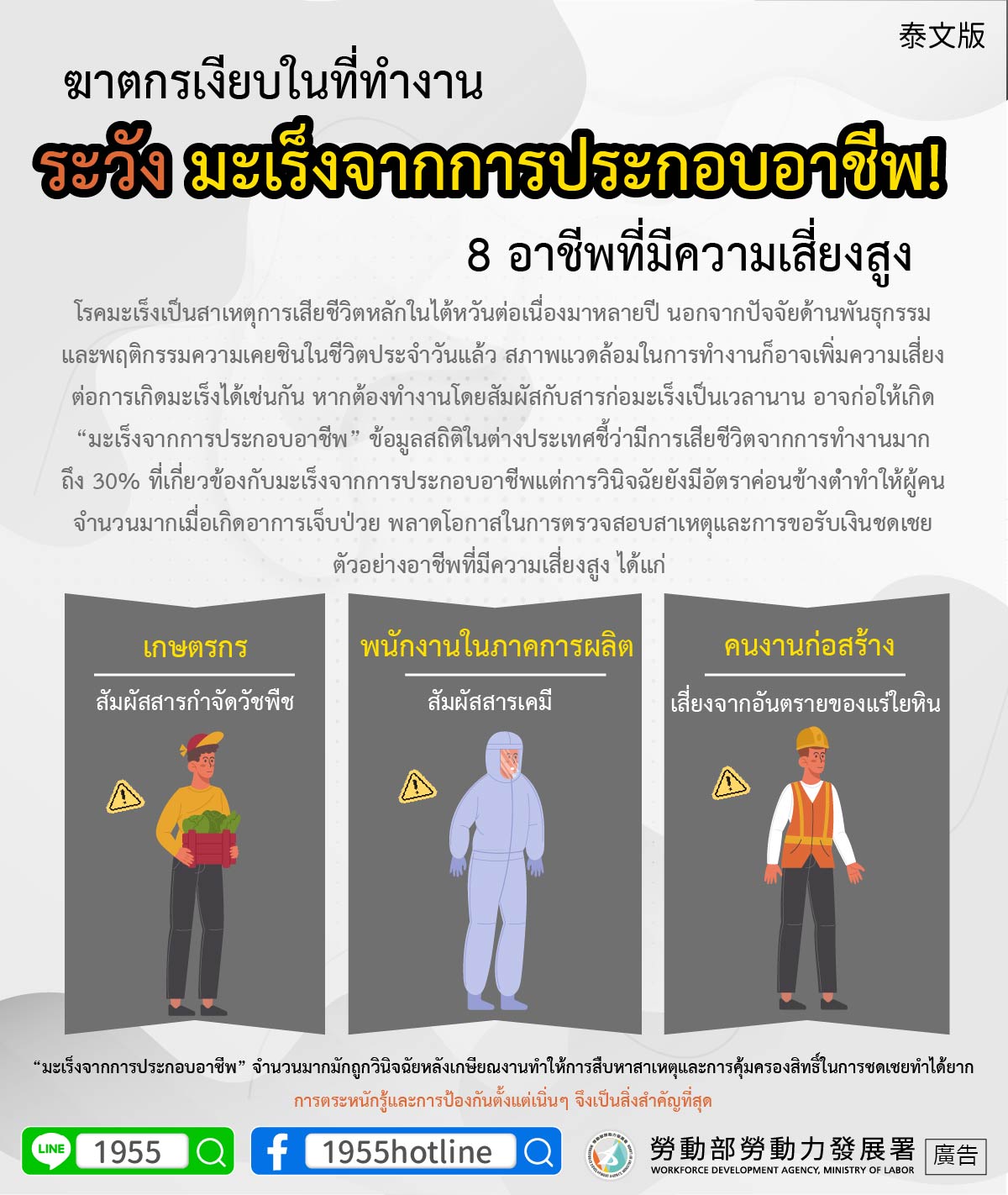 ▍ฆาตกรเงียบในที่ทำงาน ระวัง มะเร็งจากการประกอบอาชีพ! 8 อาชีพที่มีความเสี่ยงสูง