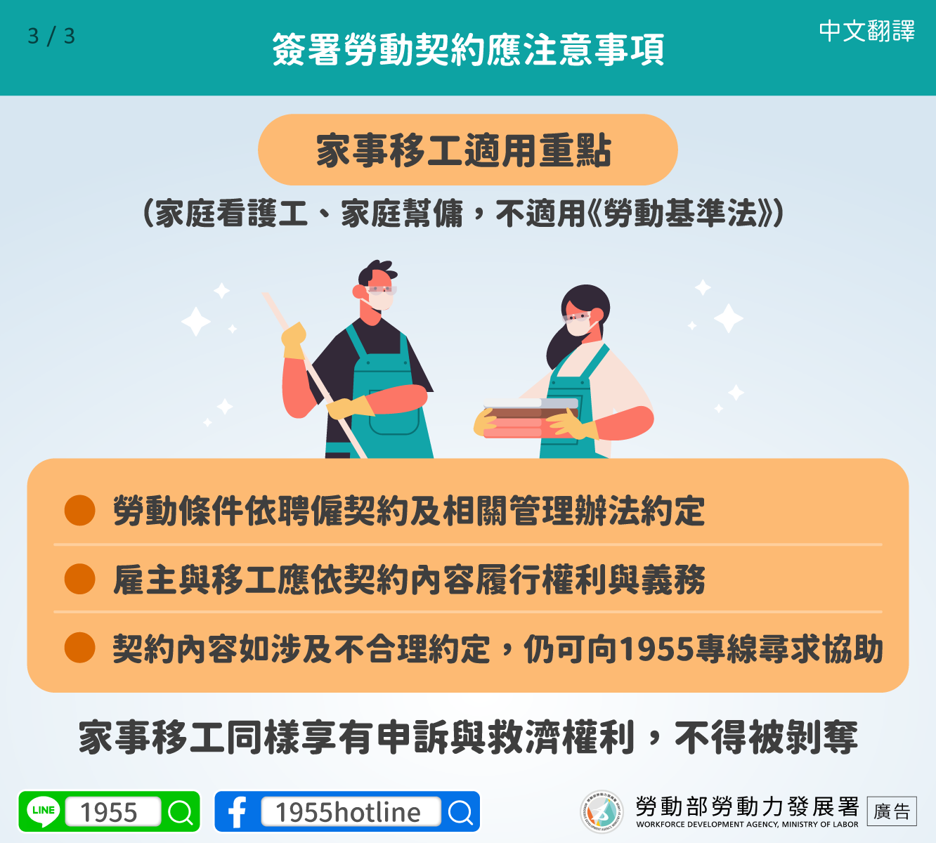 家事移工適用重點(家庭看護工、家庭幫傭,不適用《勞動基準法》)