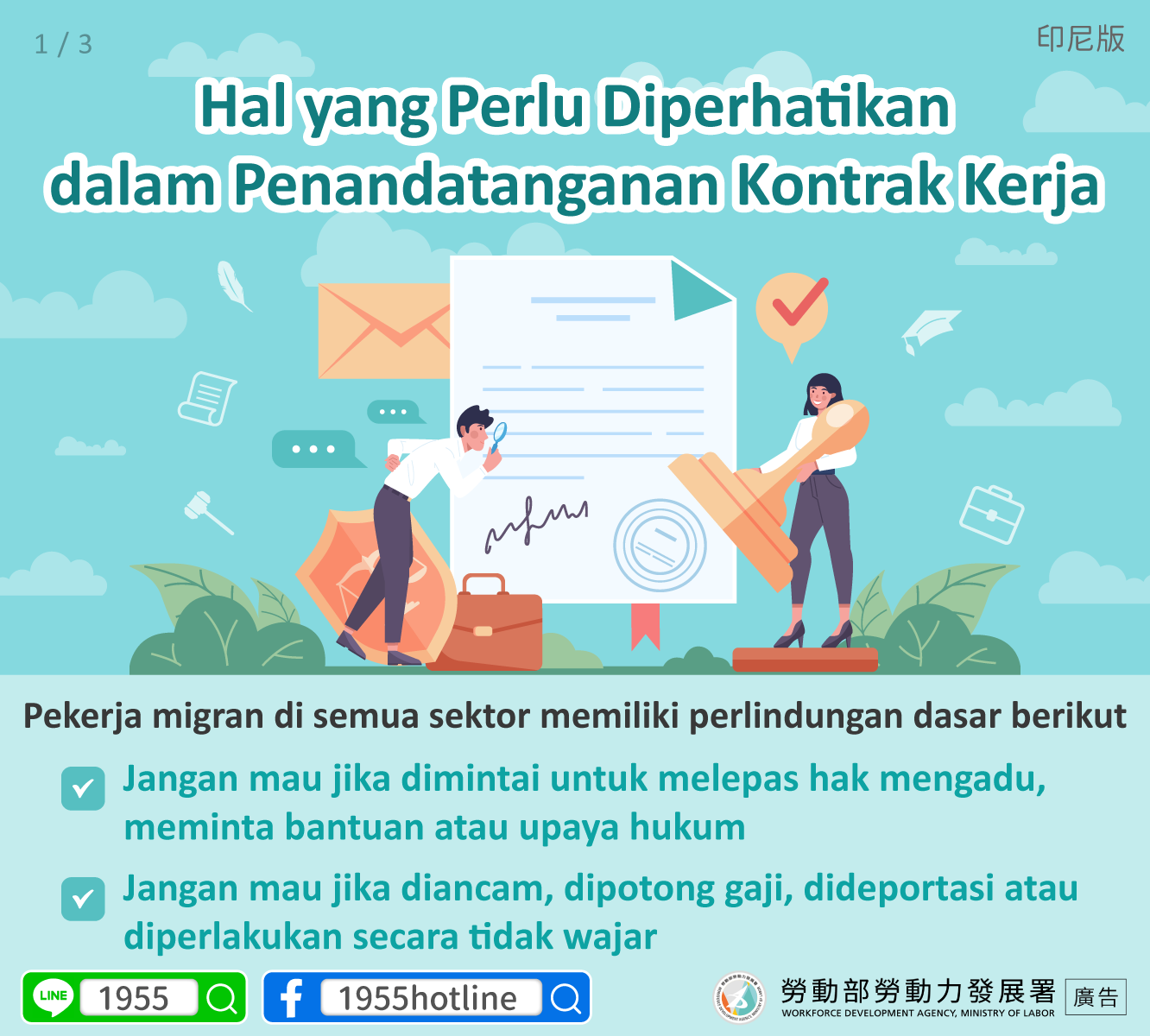•Apabila ada yang tidak wajar dalam isi kontrak kerja, maka dapat menghubungi Hotline 1955 untuk meminta bantuan